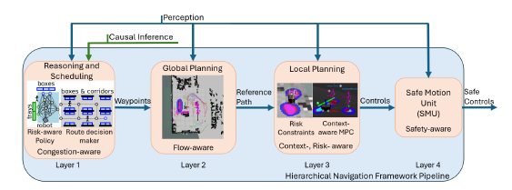 DARKO-Nav: Hierarchical Risk and Context-Aware Robot Navigation in Complex Intralogistic Environments Stracca, E.; Rudenko, A.; Palmieri, L.; Salaris, P.; Castri, L.; Mazzi, N.; Rakcevic, V.; Vaskevicius, N.; Linder, T.; Bellotto, N.; Schreiter, T.; Zhu, Y.; Castellano Quero, M.; Napolitano, O.; Stefanini, E.; Heuer, L.; Magnusson, M.; Swikir, A.; Lilienthal, A.J. European Robotics Forum (ERF) in Stuttgart (Germany), Springer Proceedings in Advanced Robotics, 2025 |